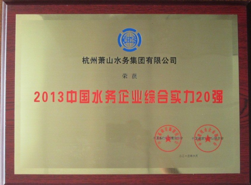 克日,在深圳举行的“2013(第3届)天下基础设施建设岑岭论坛暨评选表扬”会上,集团载获“2013中国水务企业综合实力20强”声誉称呼,成为浙江省唯逐一家获此声誉称呼的水务企业,集团董事长、总司理韩国华荣获2013中国水务行业20位功勋企业家称呼。