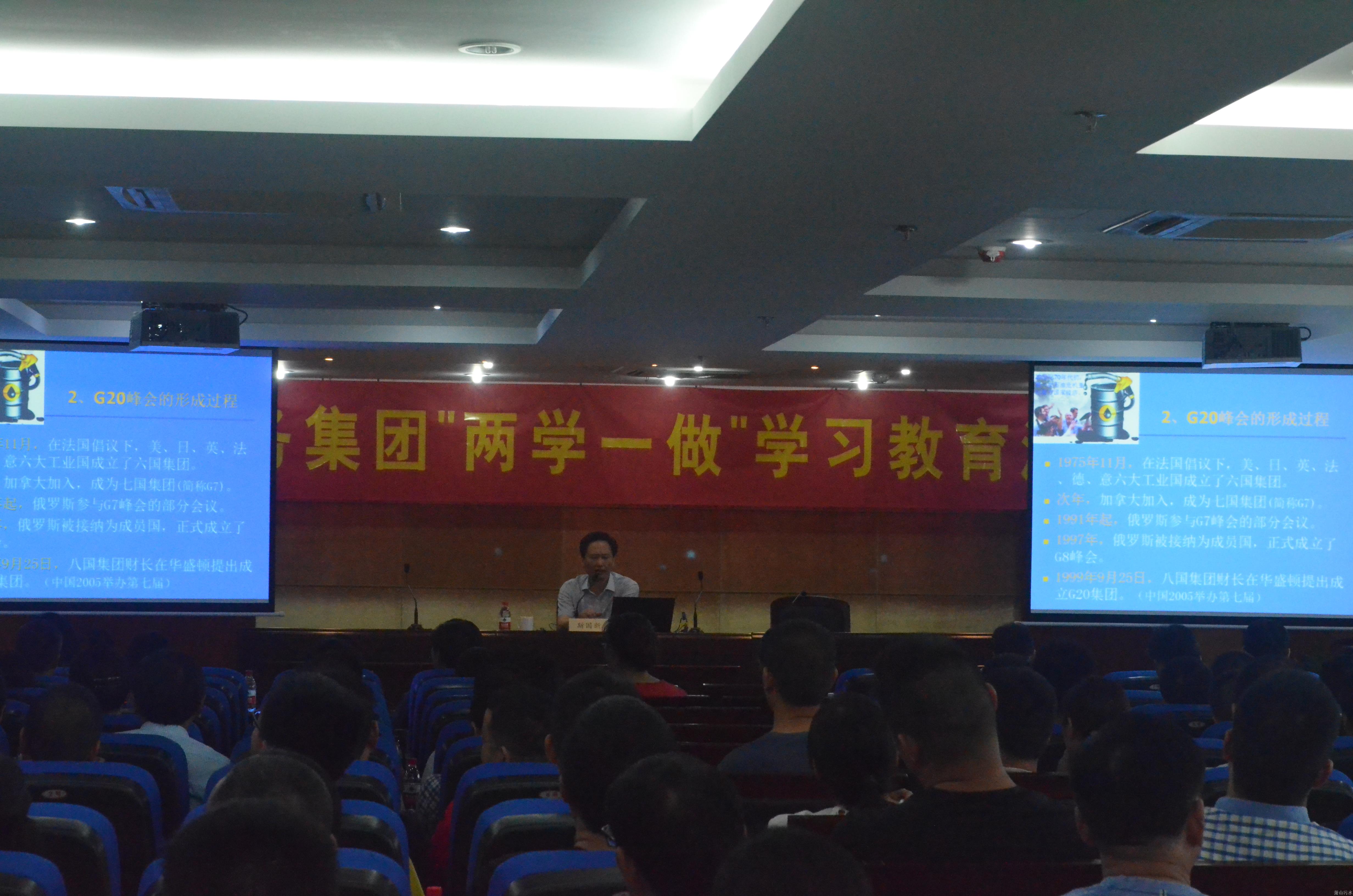 为深入学习贯彻习近平总书记系列主要讲话精神,牢靠拓展党的群众蹊径教育实践运动,增进全体党员做好峰会水务包管事情,7月4日下昼,污水公司党总支按集团要求承办开展“两学一做”学习教育运动,约请区委党校党委书记、常务副校长斯国新作专题讲座。污水公司全体党员加入运动,集团机关、投资公司、物业公司党员应邀加入。