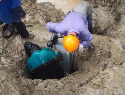 6月18日23点20分,新街山末址村段DN2400原水管线割接正在举行最后的“封窗”。这些依然挥汗如雨的身影,已经一连奋战了2天2夜,身子已然十分疲劳,可手上的行动却依然精准、熟练,一切只为能尽快恢复供水!