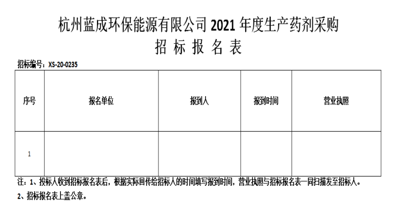 ¶þ¡¢ÕбêÏîÄ¿£ºº¼ÖÝÀ¶³É»·±£ÄÜÔ´ÓÐÏÞ¹«Ë¾2021Äê¶ÈÉú²úÒ©¼Á²É¹º¡£