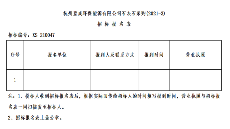 ¶þ¡¢ÕбêÏîÄ¿£ºº¼ÖÝÀ¶³É»·±£ÄÜÔ´ÓÐÏÞ¹«Ë¾Ê¯»Òʯ²É¹º(2021-3)¡£