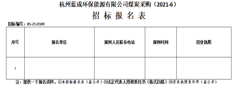¶þ¡¢ÕбêÏîÄ¿£ºº¼ÖÝÀ¶³É»·±£ÄÜÔ´ÓÐÏÞ¹«Ë¾ÃºÌ¿²É¹º(2021-6)¡£