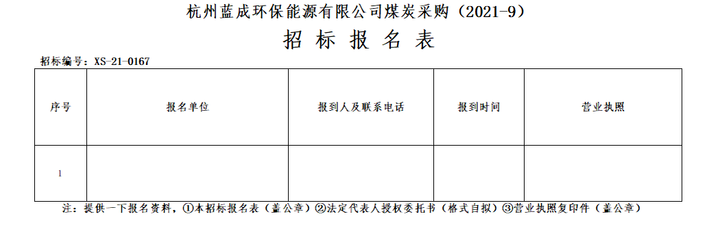 Ò»¡¢ÕÐ ±ê ÈË£ºº¼ÖÝÀ¶³É»·±£ÄÜÔ´ÓÐÏÞ¹«Ë¾£¬Õбê±àºÅ£ºXS-21-0167¡£