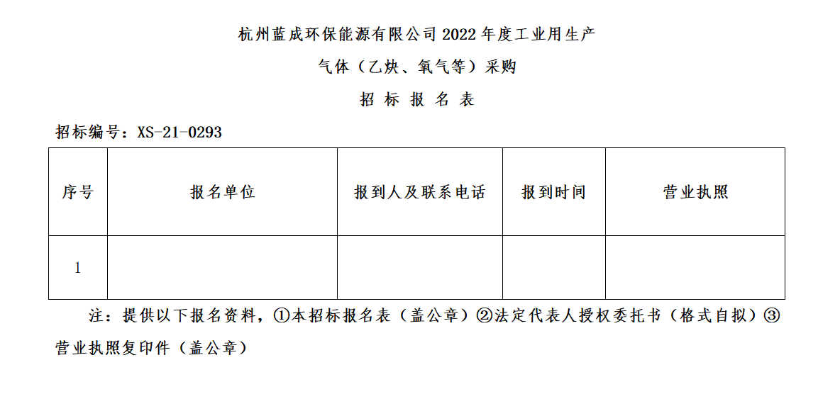 杭州蓝成环保能源有限公司,凭证杭州微彩网情形集团物资采购治理要求,对杭州蓝成环保能源有限公司2022年度工业用生产气体(乙炔、氧气等)采购举行果真招标。