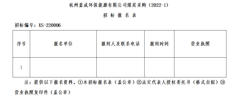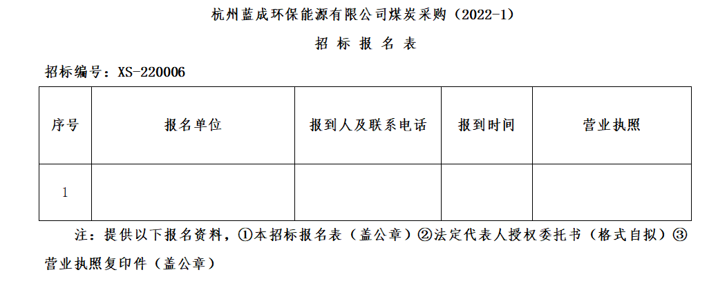 ¶þ¡¢ÕбêÏîÄ¿£ºº¼ÖÝÀ¶³É»·±£ÄÜÔ´ÓÐÏÞ¹«Ë¾ÃºÌ¿²É¹º(2022-1)¡£