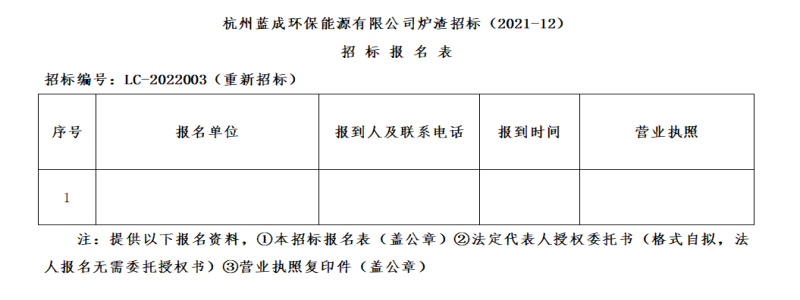 Ò»¡¢ÕÐ ±ê ÈË£ºº¼ÖÝÀ¶³É»·±£ÄÜÔ´ÓÐÏÞ¹«Ë¾£¬Õбê±àºÅ£ºLC-2022003£¨ÖØÐÂÕб꣩¡£