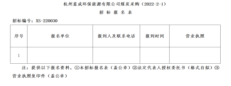 ¶þ¡¢ÕбêÏîÄ¿£ºº¼ÖÝÀ¶³É»·±£ÄÜÔ´ÓÐÏÞ¹«Ë¾ÃºÌ¿²É¹º(2022-2-1)¡£