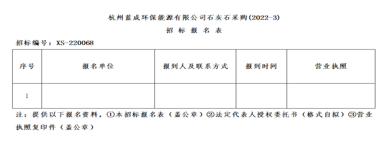 ¶þ¡¢ÕбêÏîÄ¿£ºº¼ÖÝÀ¶³É»·±£ÄÜÔ´ÓÐÏÞ¹«Ë¾Ê¯»Òʯ²É¹º(2022-3)¡£
