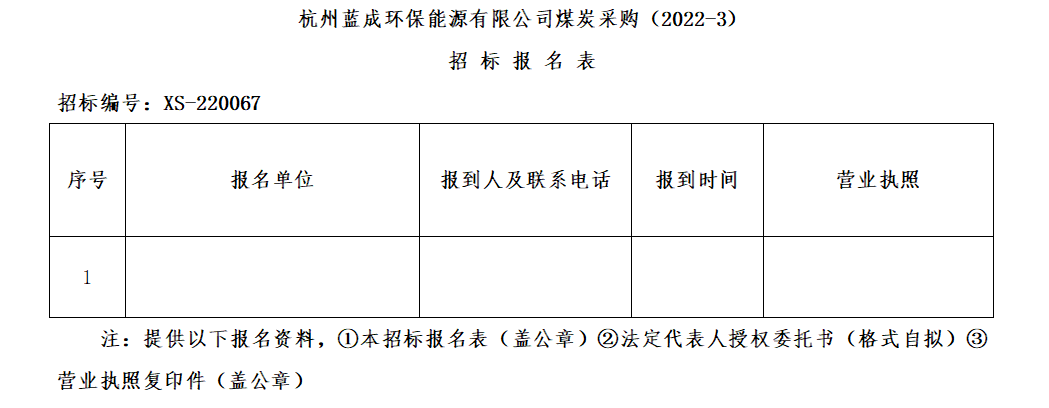 ¶þ¡¢ÕбêÏîÄ¿£ºº¼ÖÝÀ¶³É»·±£ÄÜÔ´ÓÐÏÞ¹«Ë¾ÃºÌ¿²É¹º(2022-3) ¡£