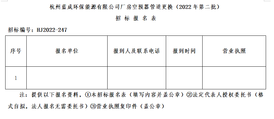 凭证杭州微彩网情形集团招标治理要求,杭州蓝成环保能源有限公司对“空预器管道替换(2022年第二批)”举行果真招标。