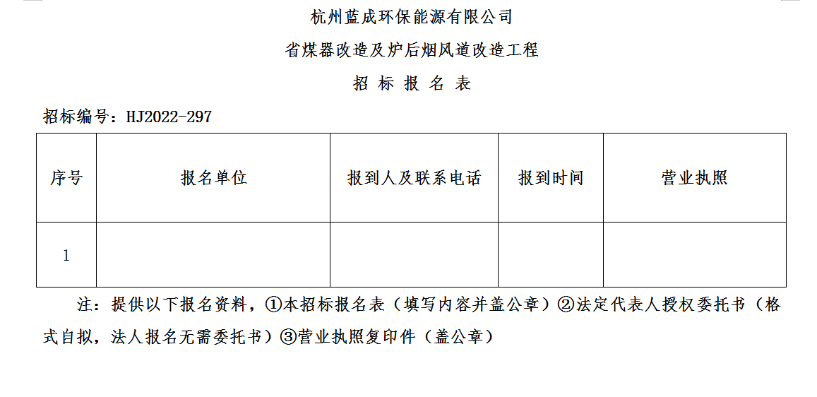 凭证杭州微彩网情形集团招标治理要求,杭州蓝成环保能源有限公司对“省煤器刷新及炉后烟风道刷新工程”举行果真招标。