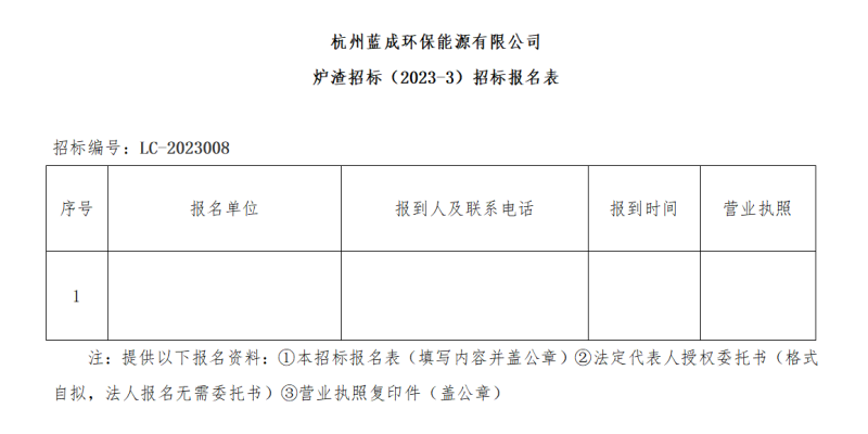 Ò»¡¢ÕР±ê ÈË£ºº¼ÖÝÀ¶³É»·±£ÄÜÔ´ÓÐÏÞ¹«Ë¾£¬Õбê±àºÅ£ºLC-2023008¡£