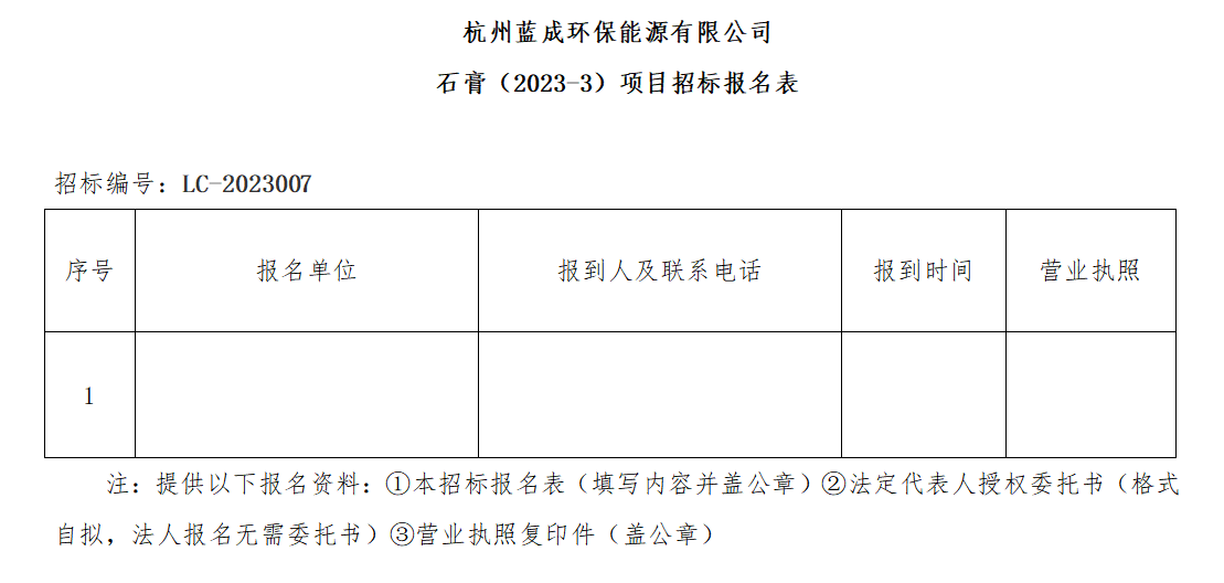 Îå¡¢·¢·ÅÕбêÎļþʱ¼ä£ºÓÐÒâÏòµÄͶ±êÈ˿ɴÓ2023Äê3ÔÂ3ÈÕÖÁ2023Äê3ÔÂ7ÈÕÖðÈÕÉÏÎç9:00~11:30ʱ£¬ÏÂÖç13:00~16:00ʱ£¨±±¾©Ê±¼ä£©£¬ÔÚº¼ÖÝÀ¶³É»·±£ÄÜÔ´ÓÐÏÞ¹«Ë¾ÁìÈ¡ÕбêÎļþ¡£¿Éµç×Ó°æµÄÐÎʽ·¢³ö¡£