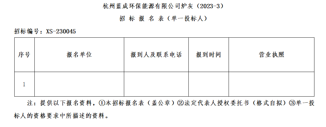 Ò»¡¢ÕÐ ±ê ÈË£ºº¼ÖÝÀ¶³É»·±£ÄÜÔ´ÓÐÏÞ¹«Ë¾£¬Õбê±àºÅ£ºXS-230045¡£
