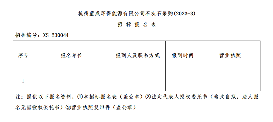 º¼ÖÝÀ¶³É»·±£ÄÜÔ´ÓÐÏÞ¹«Ë¾£¬Æ¾Ö¤º¼ÖÝ΢²ÊÍøÇéÐμ¯ÍÅÎï×ʲɹºÖÎÀíÒªÇ󣬶Ժ¼ÖÝÀ¶³É»·±£ÄÜÔ´ÓÐÏÞ¹«Ë¾Ê¯»Òʯ²É¹º(2023-3)¾ÙÐйûÕæÕбꡣ