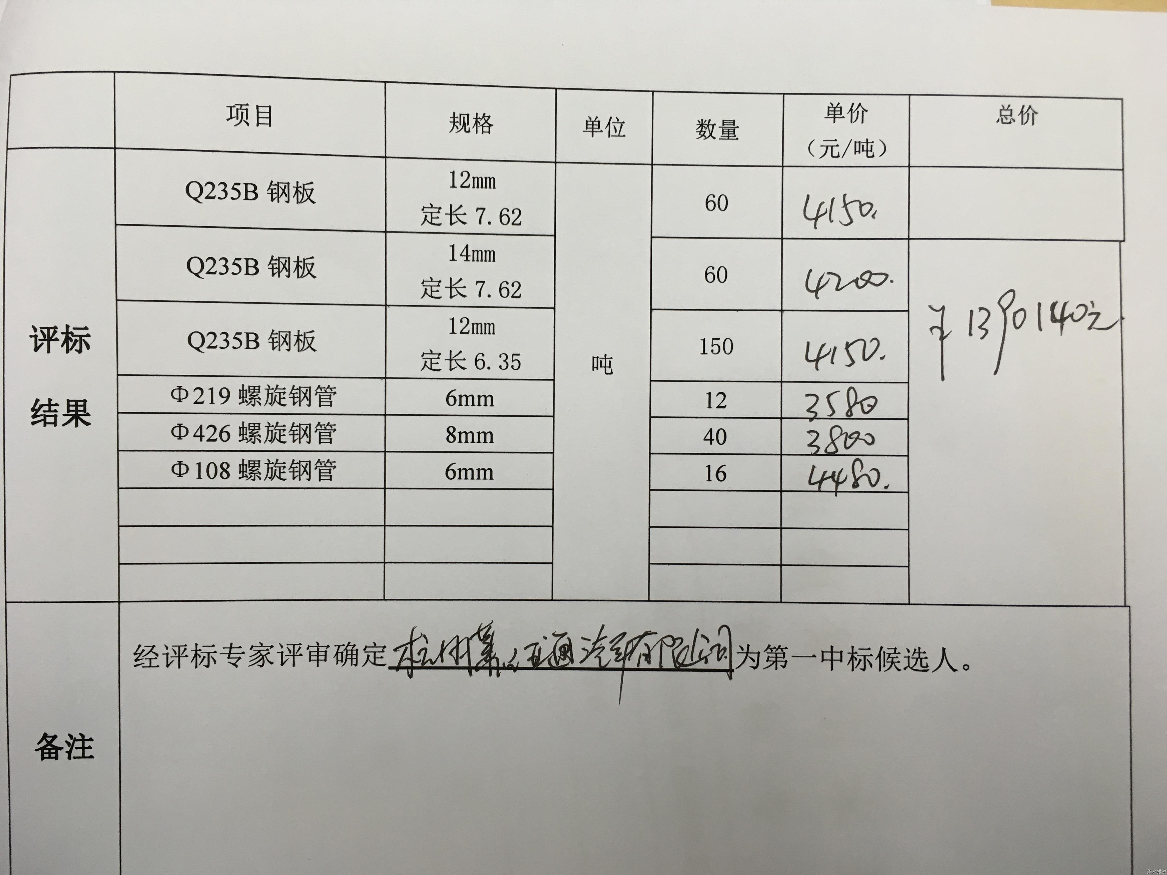通告内容: 凭证集团工程项目招标有关划定,于2016年12月20日09:00时,在水务集团B座 27楼聚会室,组织了杭州新城德佳房地产开发有限公司给水工程等钢板、钢管采购项目招标的开标运动,凭证招标文件中约定的总价最低价中标原则,确定中标候选人,中标单价及总价由中标单位自行填报。现将招标效果公示如下: 一、 中标效果公示: 中标单位:杭州微彩网亚通汽车有限公司 评标专家:何英菲、黄李栋、李永刚 二、投诉电话:0571-82828930 |