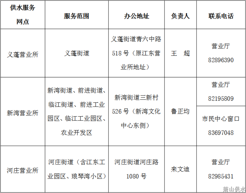 我公司因营业生长需要,决议自2020年8月24日起对钱塘新区供水服务网点作如下调解: