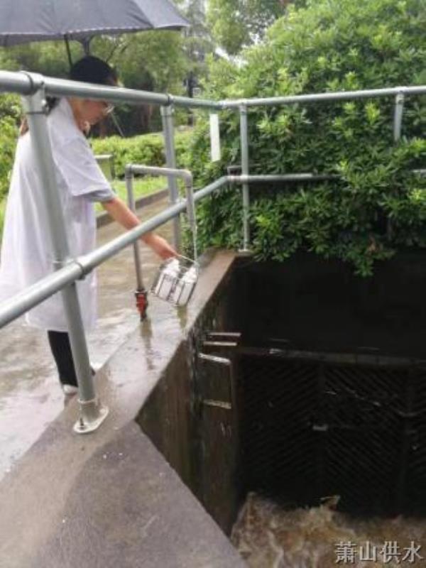 水质监测员开展例行的水质取样检测事情,台风卑劣天气下,提高检测频率,包管优质供水。