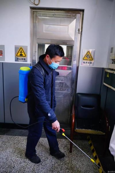 第三水厂党员在确保清静生产大条件下,使用自身资源优势,为厂区周边公交车站、垃圾桶周围区域自愿消毒。