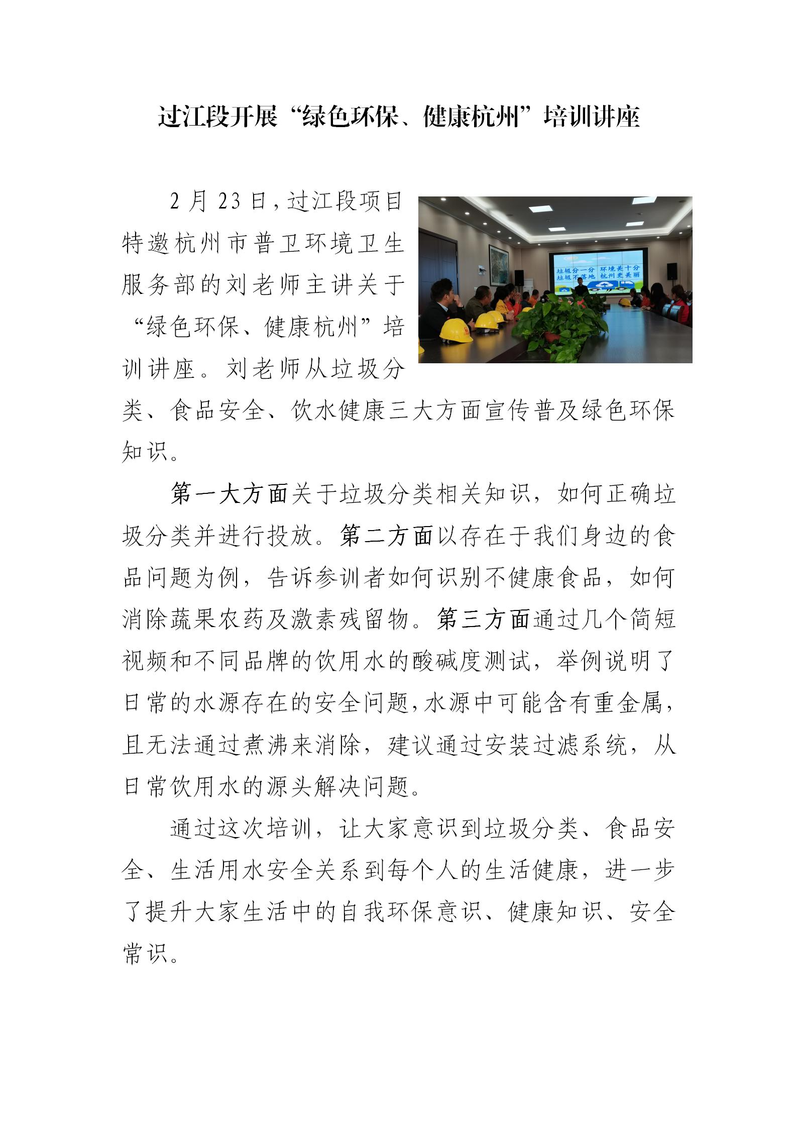 过江段开展“绿色环保、康健杭州”培训讲座