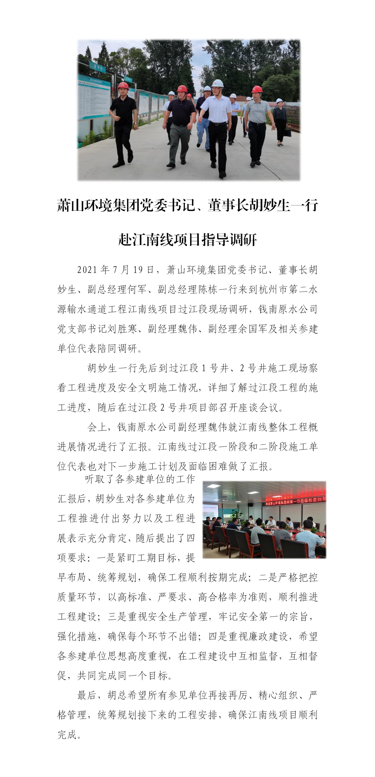 微彩网情形集团党委书记、董事长胡妙生一行 赴江南线项目指导调研