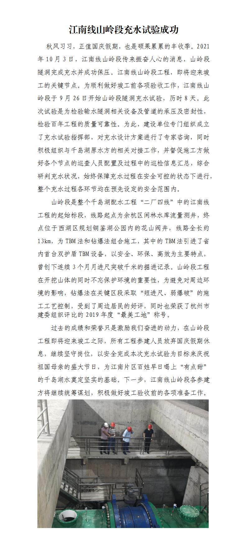 江南线山岭段充水试验乐成