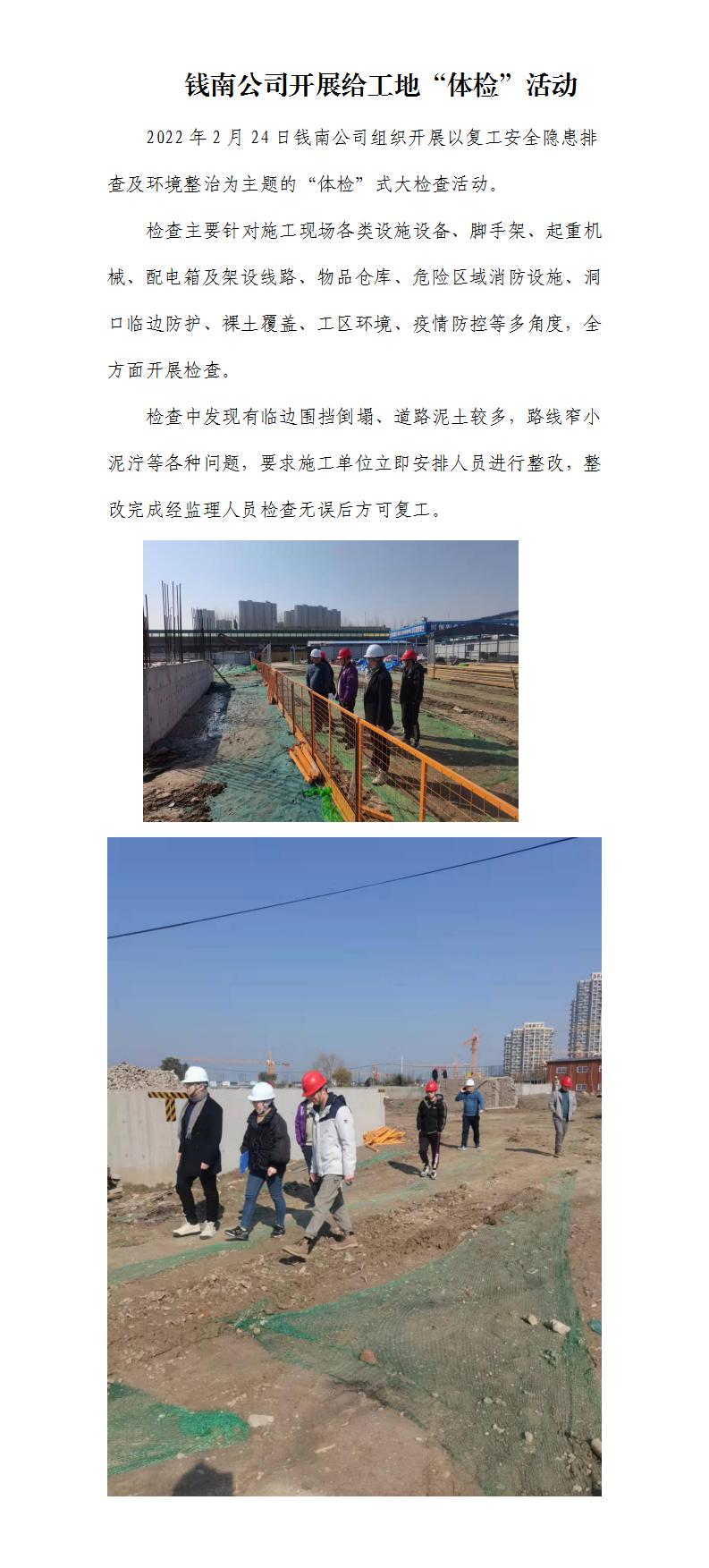 钱南公司开展给工地“体检”运动