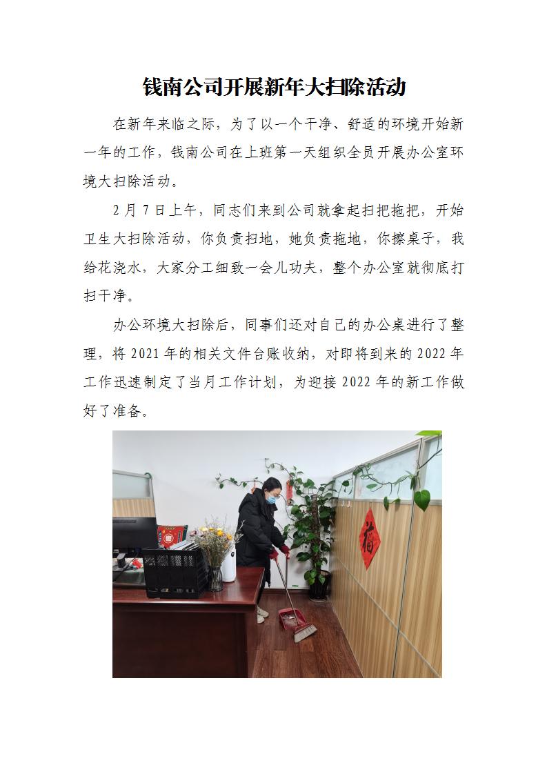 钱南公司开展新年大扫除运动