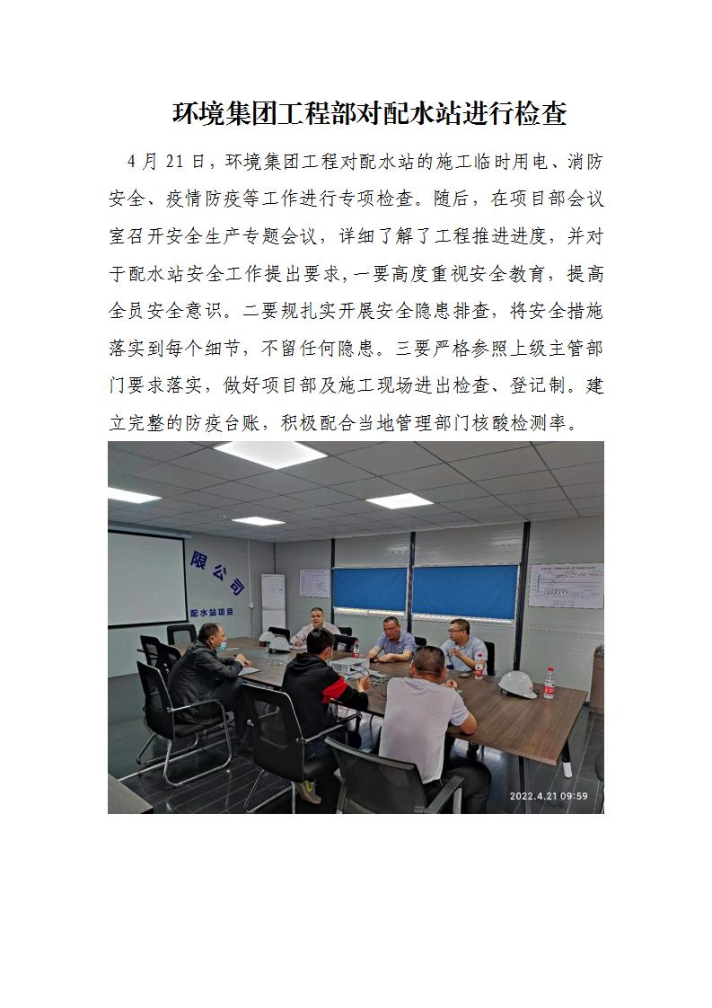 情形集团工程部对配水站举行检查