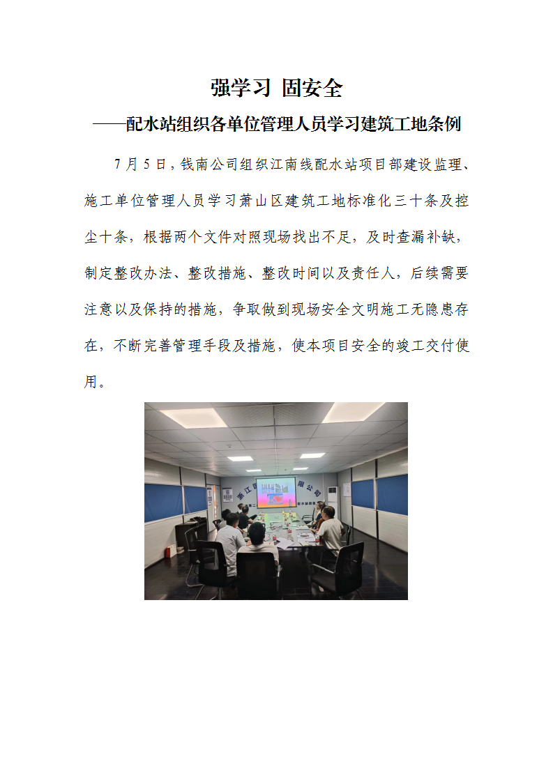 强学习 固清静 ——配水站组织各单位治理职员学习修建工地条例