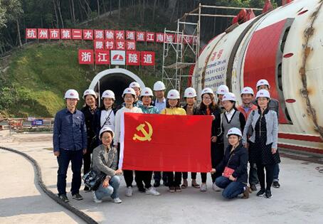 第四党支部一行旅行了江南线暂时党支部党员运动室建设情形,随后移步工业广场观摩已组装成型、正在调试中的华东地区首台双护盾TBM“钱南号”,见到云云“钢铁巨兽”,各人纷纷感伤不虚此行。