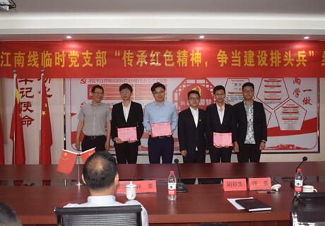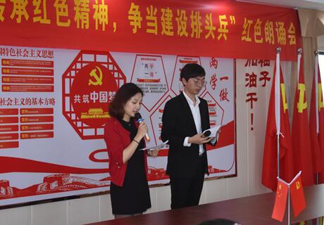 2019年5月16日下昼, 江南线暂时党支部在江南线山岭段党员运动室组织开展以“传承红色精神,争当建设排头兵”为主题的红色朗诵会。集团党委委员、副总司理兼钱南公司董事长、总司理胡妙生,市市政公用公司副总司理柯鹤新,钱南公司副总司理余国军出席本次运动。
