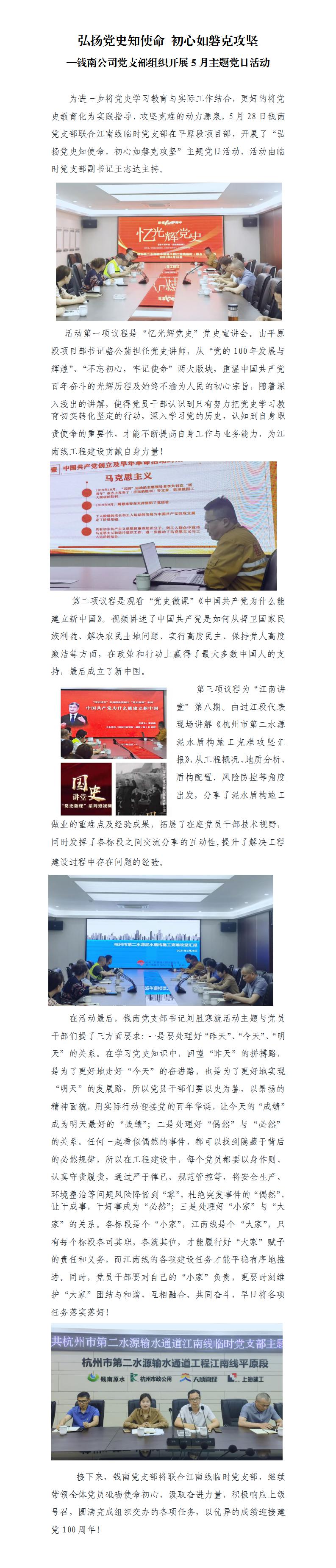 弘扬党史知使命 初心如磐克攻坚—钱南公司党支部组织开展5月主题党日运动