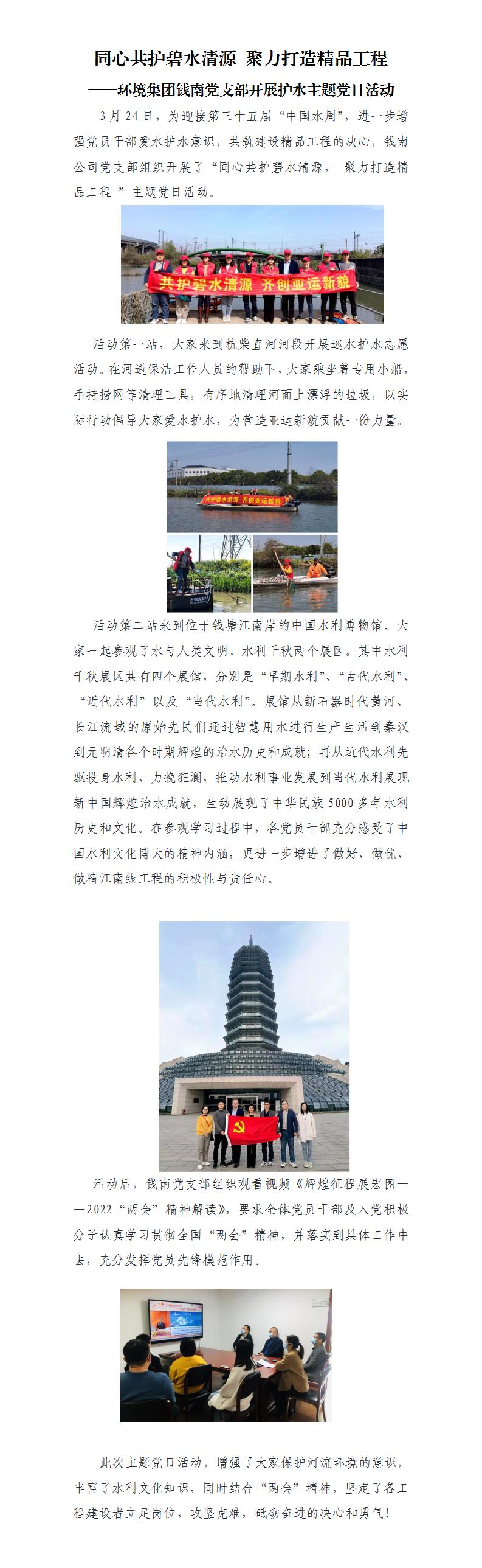 同心共护碧水清源 聚力打造精品工程 ——情形集团钱南党支部开展护水主题党日运动