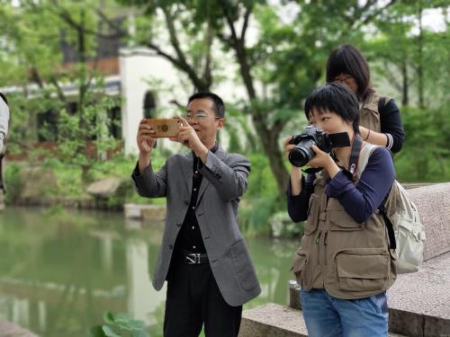 实践钻研时代,摄影“大咖”们各展身手,带来“两岸好山青嶂列,一泓新水绿罗铺”的视觉盛宴。各人共享美图,相互学习指点构图技巧,并就怎样提高摄影水平、充分验展图片宣传影响力举行了讨论。