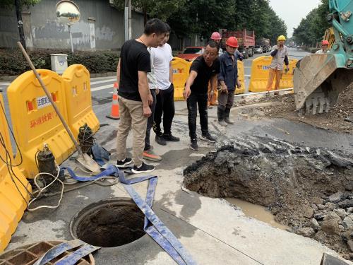 7月15日黄昏,污水公司事情职员在一样平常巡查历程中发明闻堰街道桥南路与五金路路口地面蹊径沉降显着,经检查发明为DN500污水管破碎。为避免爆发清静事故,南片运管中心连夜举行紧迫抢修,16日下昼6时,污水管道已恢复正常运行。