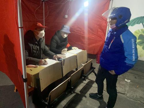 文源社区分早中晚三班开展防控,前期人手严重缺乏,李永晓自动请缨,早班中班连轴转,从早上7时一直值守到晚上12点。社区自愿者缺口到位后,他转为中班值勤,天天下昼4时至晚上12时,都可以看到他颀长的身影。