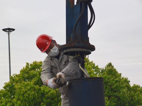 现场,磨练职员通过水量调理、吊泵拆解、管线检查、打磨铁锈、抹油保养、重组试用、吊泵入池等办法,凭证年度磨练妄想,对厂区水泵举行逐一排查。