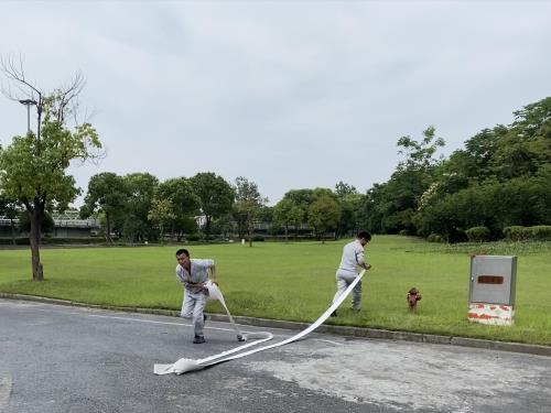 本次演练分为双人水带演练、50米担架抬伤员演练、正压式呼吸器与清静带衣着演练以及灭火器操作演练,凭证熟悉角逐规则、掌握器材使用技巧以及模拟事故应急演练3个办法开展演练。