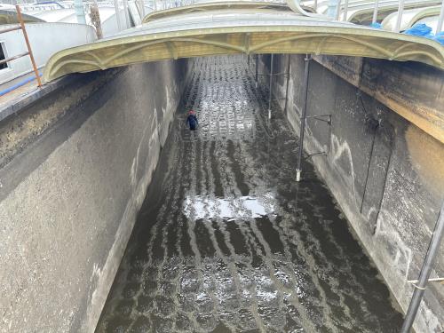 2月11日(除夕当天),大修工程准期开工。清池作业需要排空数以万吨的泥水,为抢抓短暂的时间窗口期,钱江厂决议接纳“放空管+污泥泵组合”的方法,将泥水运送回前处置惩罚端口,确保清池排泥有序推进。