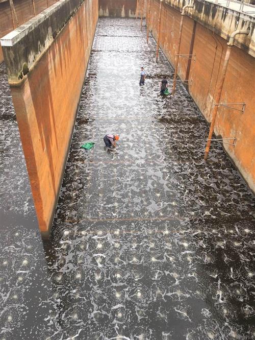 钱江厂二期反应池因曝气膜使用周期长、老化严重,且池上气阀大都失灵,导至出宇量漫衍不匀称,既影响了正常生产运行,又加大了鼓风性能耗。该厂自五月中旬起,最先放空B池,扫除池底积泥,再由生产厂家对气管和曝气膜开展磨练、加固及替换。接下来,该厂还将对A池举行替换。