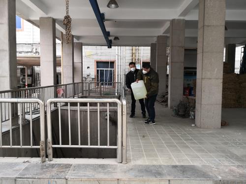 周纪煜、翁玲玲等党员在统领泵站投加次氯酸钠消毒液,起到消鸩杀菌的作用。在疫情下,党员们更是加大管线巡查力度,包管污水排放通畅。
